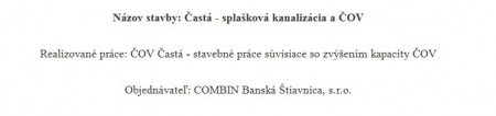 Častá - splašková kanalizácia a ČOV